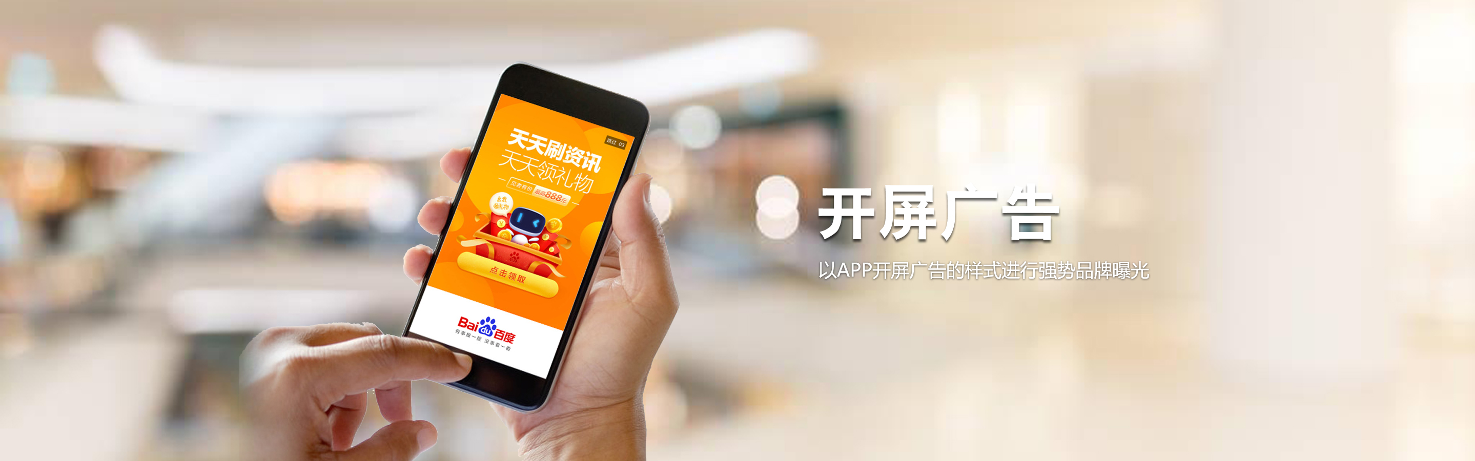 百度開屏整合百度優(yōu)質品牌廣告流量 以APP開屏廣告的樣式進行強勢品牌曝光