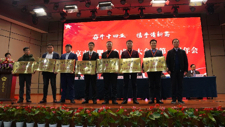 南京市統(tǒng)戰(zhàn)部副部長、市工商聯(lián)黨組書紀丁銘為商會會長單位授牌,李中兵會長領(lǐng)牌。