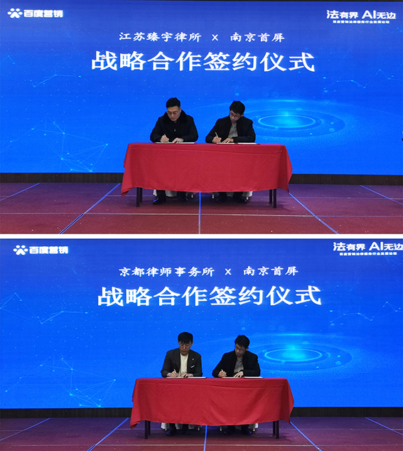 在多年的發(fā)展中,離不開廣大法律服務行業(yè)客戶的信任與支持,會上南京首屏與江蘇臻宇律所、京都律師事務所簽訂戰(zhàn)略合作協議,借助百度平臺推動律所的創(chuàng)新式營銷能力,促進法律服務行業(yè)的發(fā)展。
